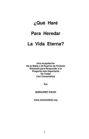 ¿Qué Haré Para Heredar La Vida Eterna? Una recopilación De la Biblia y El Espíritu de Profecía Diseñada para Responder a la Pregunta más Importante De Todas Con Comentarios Por MARGARET DAVIS www.whatshallido.org 1