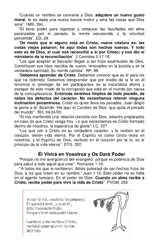 Cristo, recibe poder para vivir la vida de Cristo”. PVGM, 255.